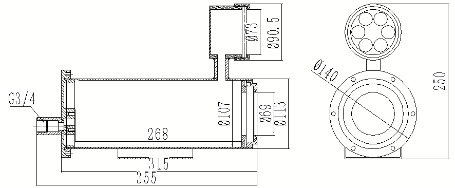 355(L)*Ø140(W)*250(H)mm |