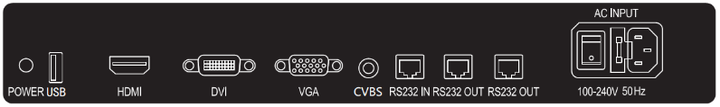 HDMI/DVI/VGA/AV/USB/RS232/ 电源接口 |